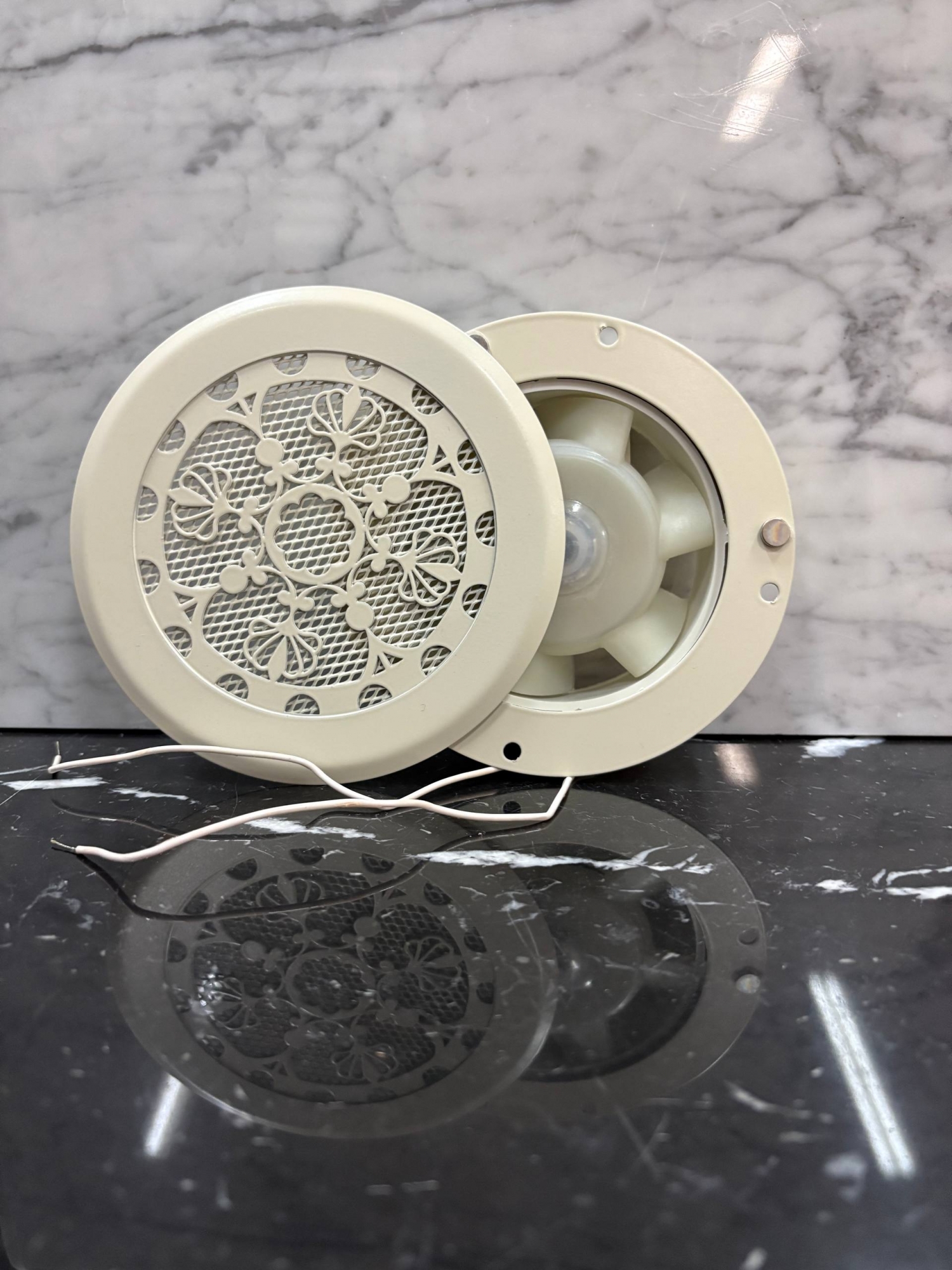 Диффузор на магнитах с вентилятором ТД100 бежевый RAL1013 цветочный орнамент 100 мм