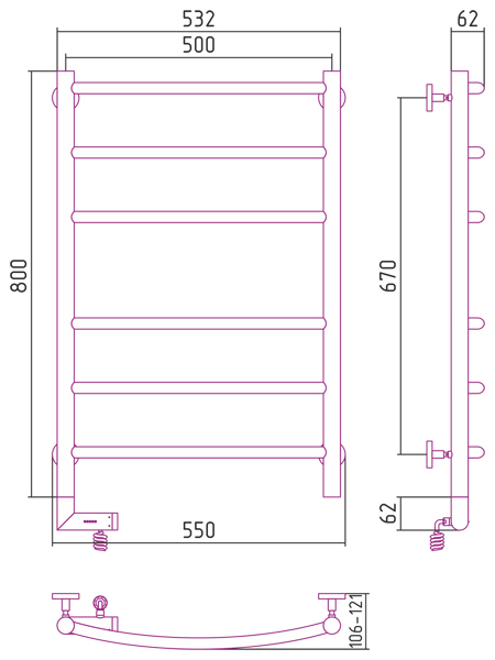 Полотенцесушитель электрический Сунержа Галант 2.0 800x500